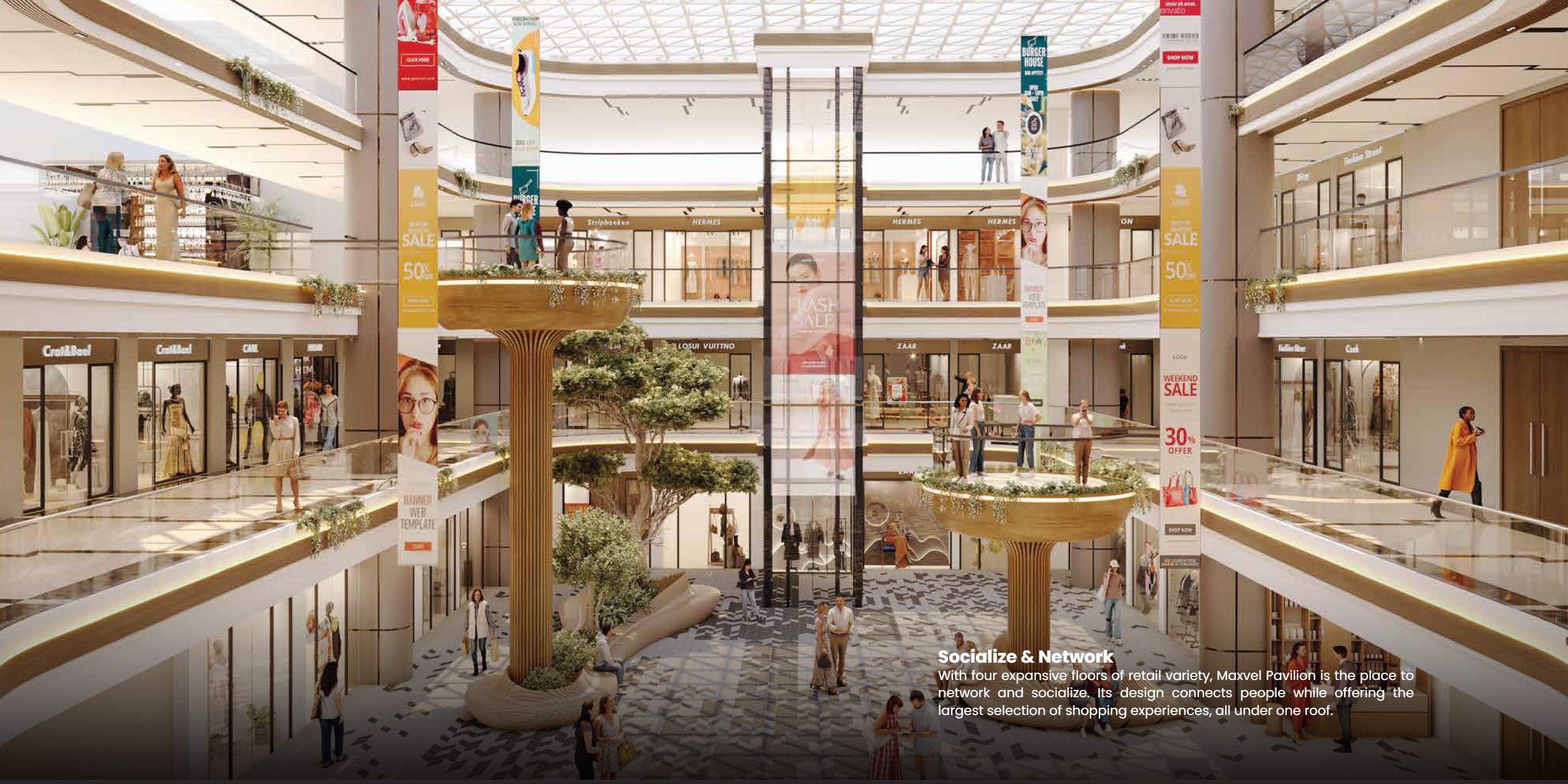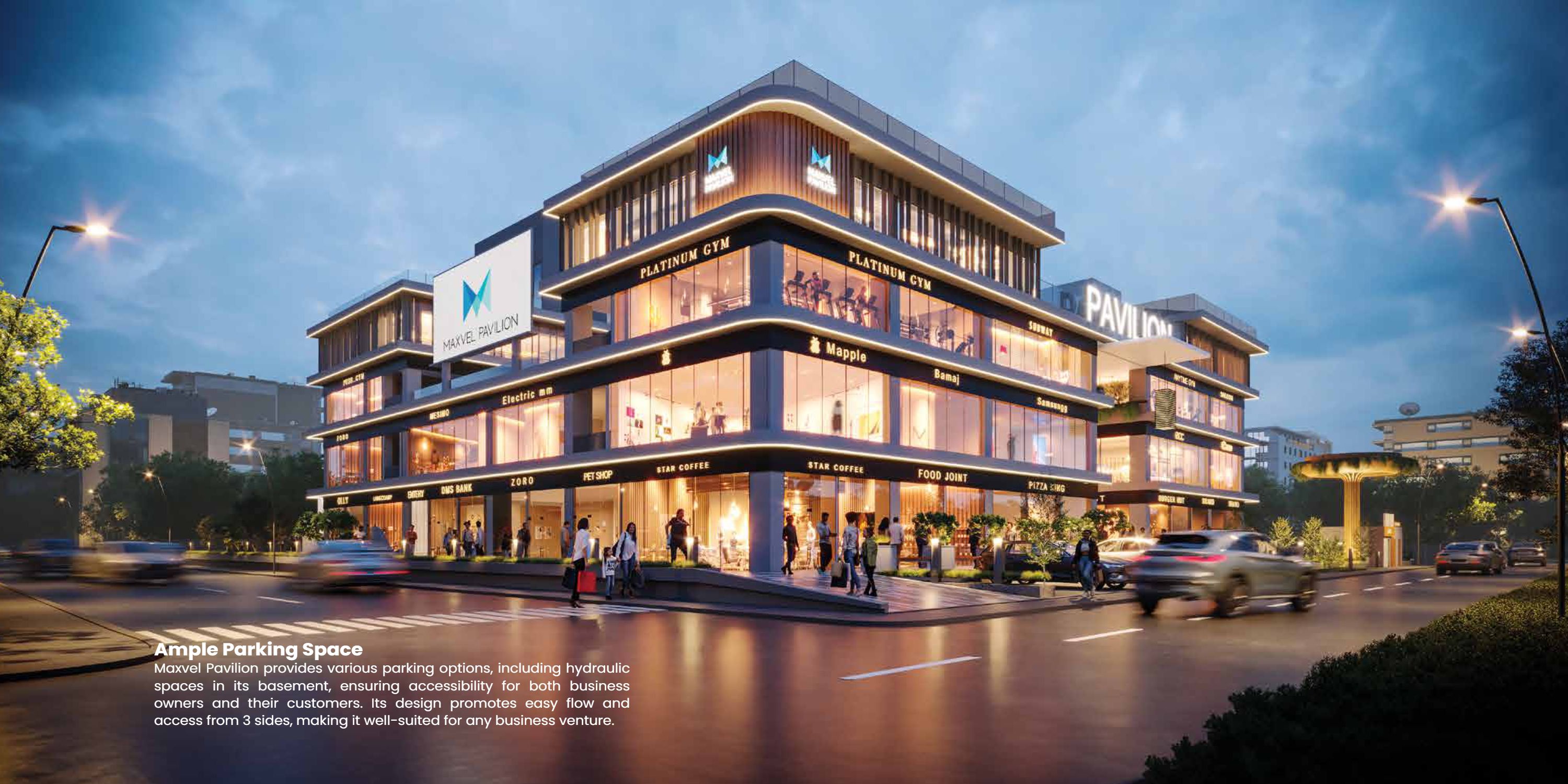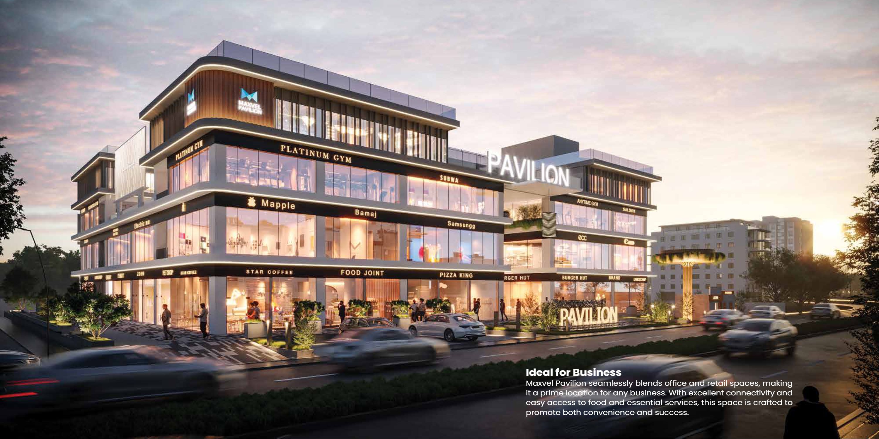 Maxvel Pavilion is the ultimate commercial hub that delivers a dynamic mix of shopping, retail, banking, and office spaces to a cross-section of customers. Its ideal strategic location assures easy access and convenience and makes it an ideal destination for businesses and customers alike.The atrium of Maxvel Pavilion is an architectural wonder that enhances a modern aesthetic, increasing the ambiance and shopping in that place. The atrium has wider walkways so that visitors can be free to move about and around in an open and easily accessible atmosphere. This particular area, very carefully built, is under professional companies which ensure that each and every corner reflects quality and cleanness.
